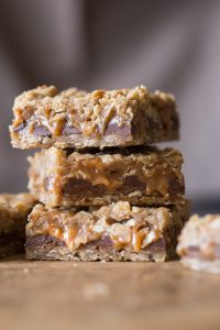 OH BOY, I hope you guys are ready for these! These Carmelitas are going to steal your heart and lock it away forever. And the best thing is they are super easy to make! They are basically caramel and chocolate sandwiched between two buttery oatmeal cookie layers… But all you really need to know is…