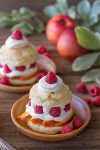 My favorite sweet, buttery, flakey biscuits filled with juicy, ripe peaches, fresh raspberries, and homemade whipped cream.