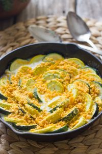 Tender crisp zucchini and yellow squash with a creamy white sauce with a cheesy, crunchy buttery cracker crumb topping.