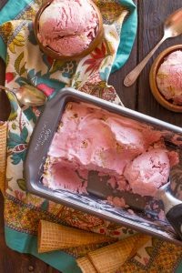 Made with finely crushed freeze dried raspberries, this super creamy ice cream has a beautiful natural pink color and true raspberry flavor.
